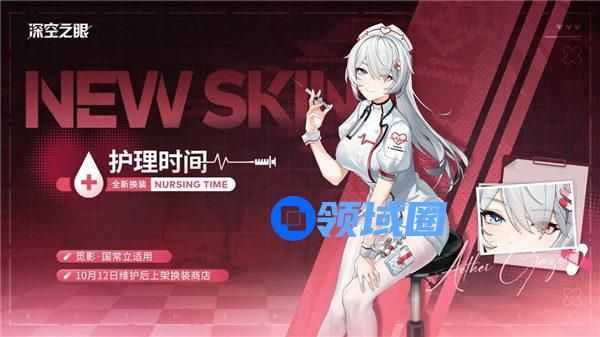 白色紧身护士装勾勒曲线身材,胸口处用红色线条描绘心电图,纽扣的设计则以药片为灵感,看似简约却又处处暗藏巧思。脖子上挂着一副听诊器,方便在进行急救科普时为管理员演示操作。