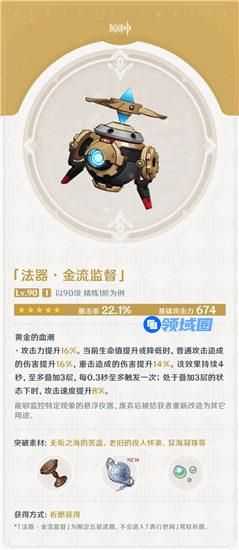 2.金流监督适是莱欧斯利的专武,基础攻击力给到了最高一档的674,对于吃攻击力的莱欧斯利来说非常有利,副词条是暴击率,不过副词条词条数比较少,只有22.1%,但好在莱欧斯利能穿猎人套,倒也不缺暴击率。