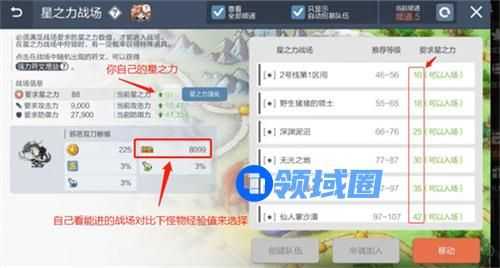 5、星力战场是我们最主要的升级系统,根据自身装备的星力数量总和解锁相对应星力的地图,星力越高,进入对应的星力地图经验也越高;