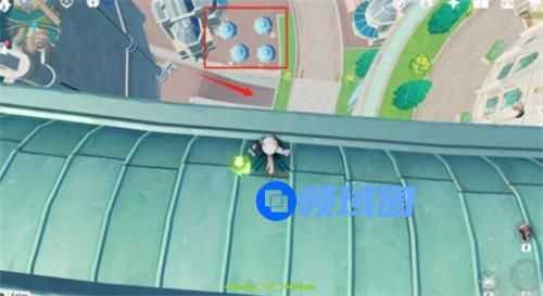 3、接着一直走到前面的这个管道状的建筑当中,飞到它的上面。