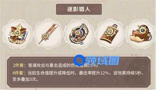 1、圣遗物建议选择逐影猎人套装,该套装二件套效果提升普攻和重击伤害。
