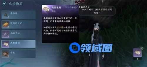 1、完成双峰照影任务获得的道具【禹黎遗刻】出示给仙居原言不谬(870,8831)