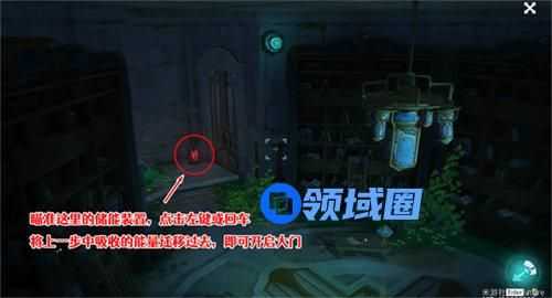 (2)瞄准门口的【储能装置】,点击左键或回车,将第一步中吸收的能量迁移过去,即可完成解谜。