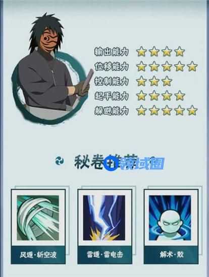 神秘面具男「红夜之刃」拥有优秀的反手能力,他的核心机制是二技能的虚化,主要输出方式是二划一的派生技能,是一位能力较全面的忍者。