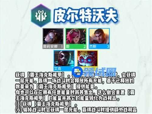1、获得[霸王海克斯机甲] ,当你输掉一场战斗时,【霸王海克斯机甲】就会获得一层充能,赢得一场战斗会释放所有充能,基于以释放的数量来为飞霸王海克斯机甲] 提供能量