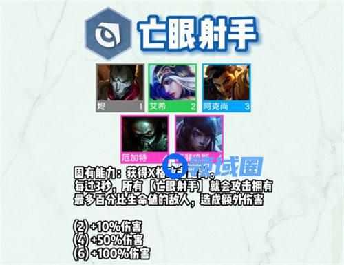 每过3秒,所有亡眼射手就会攻击拥有最多百分比生命值的敌人,造成额外伤害