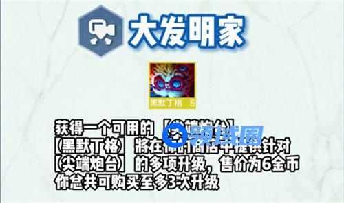 [黑默下格] 将在你的商店中提供针对[尖端炮台]的多项升级,售价为6金币。