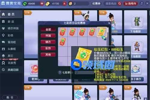 3、得到仙玉红包后,可以在活动期间购买霓裳宝阁锦衣祥瑞类商品时使用。