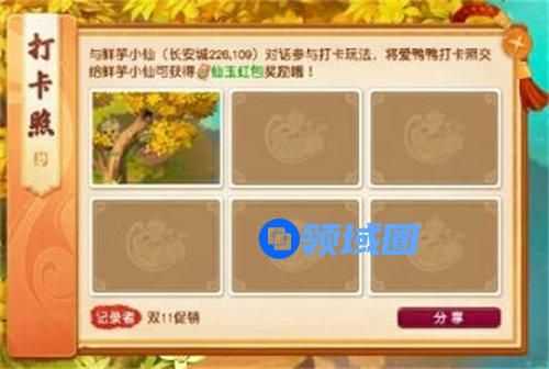 9、完成之后,获得“爱鸭鸭打卡照”一张,鲜芋小仙后可以获得10-888不等的仙玉红包。