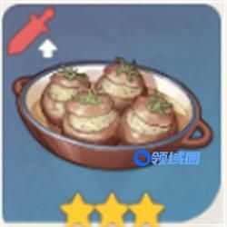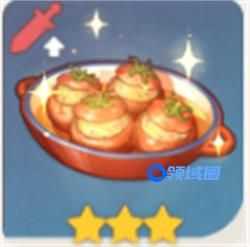 描述:荤素搭配的菜肴。将圆溜溜的番茄挖空,放入均匀剁碎的肉馅,组装好后烤熟。成品酸甜柔软,是枫丹餐桌上备受欢迎的常驻嘉宾。