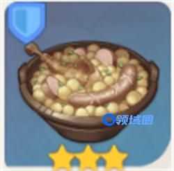 描述:简朴的乡土炖菜。只需要在砂锅里混合所有食材再煮熟便可食用。值得一提的是,这道菜的全名为——用卡苏莱砂锅炖煮的秃秃豆焖油封禽肉与熏制香肠佐以茉洁草。实在太长,就简称卡苏莱砂锅了。