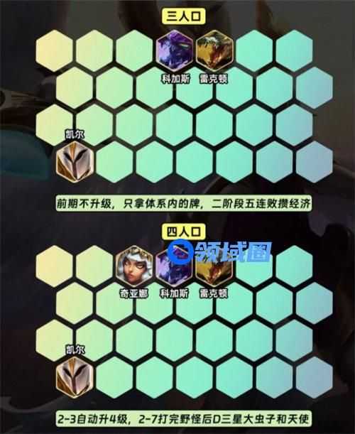 2-3自动升4级,前期用凯尔搭配格斗过渡即可