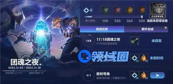 团魂之夜,峡谷相聚!今日起,截止至11月18日,召唤师可通过完成挑战任务与加成任务获取能量,升级宝箱提高品质。