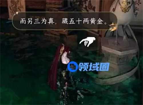 3、在雕塑上可以看到一张纸,拿下来即可查看线索。