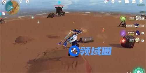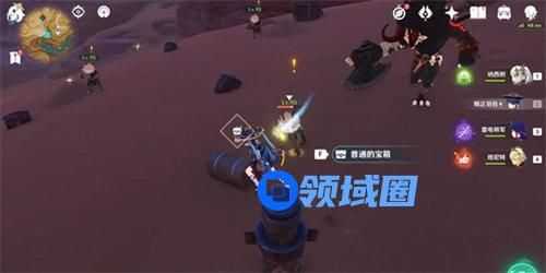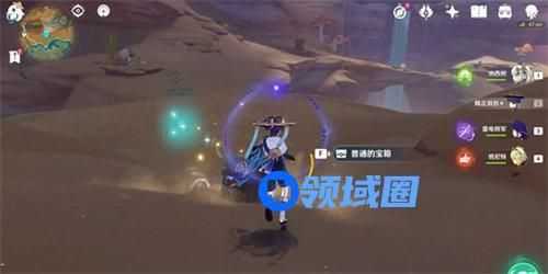 从传送锚点出发,往东南方向(地图右下方)上坡,看到沙堆后进行风属性攻击,获得普通宝箱。