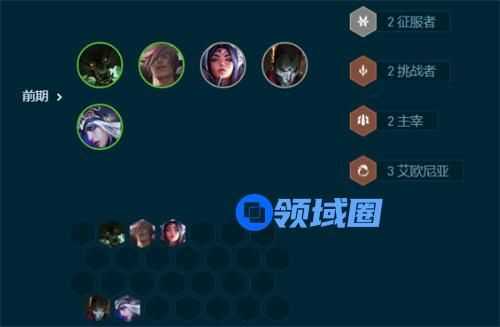 前期过渡以三艾欧尼亚和征服者为主的羁绊,寒冰带输出装备,刀妹带肉装