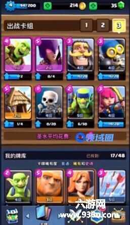 这套卡组呢圣水消耗极低,下兵非常 之快,容错率很高,进攻和防守性非常均衡。不过需要注意的是投弹兵和哥布林飞桶的使用时机。