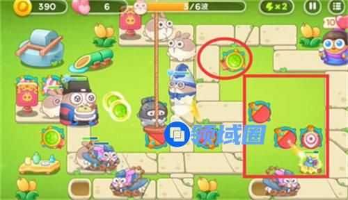 6.最后攒足金币升级塔炮,锁定兔子攻击即可轻松过关;