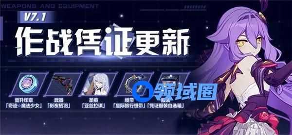 新一期作战凭证开启,「作战工坊」商店内开放奇迹魔法少女晋升印章、弓箭武器「影夜栖羽」、渡鸦之诗圣痕套装「亚丝拉琪」兑换。提升历练值还可在作战凭证等级奖励中获取「奇迹魔法少女碎片」!