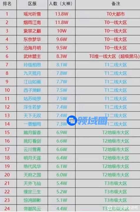 目前瑶光当之无愧第一大服,烟雨江南紧随其后,紫禁之巅、东京梦华、沧海月明都是稳定的大火区。这里观众们肯定跟我一样疑惑,怎么有个不熟悉的名字,武林盟主,这服真的是标准的黑马,名不见经传,默默的现在直冲T0大火区。出于好奇心,我也去武林盟主玩了一下,可能因为是推荐区,可能是名字挺可爱,新人真的多,而且区里女玩家尤其多,打了个副本四个女生,而且其中还有两个是高中生,侧面也证明了这游戏确实出圈了,很多MMO新手来玩,但是学生党多也存在一个隐患,这个区如果能稳定住,真的是未来可期。
