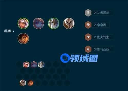 前期一般用琪亚娜打工,配天使开2裁决,米利欧配加里奥开2神谕,挂上波比开3德玛。趁早拉5级给装备,争取打连胜开局。纯法强装备在前期能利用的打工英雄不多,所以逆风开局也可以接受连败,这一套是赌3费卡,满连败可以在3-5拉7级直接D牌,不会影响运营节奏。