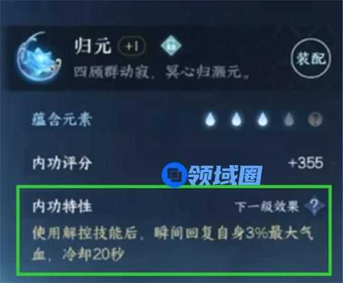 在逆水寒手游的内功系统中可以看到,每个内功都会有一个内功特性(绿色框内),也就是这个内功的附带技能,会随着等级提升强化效果。
