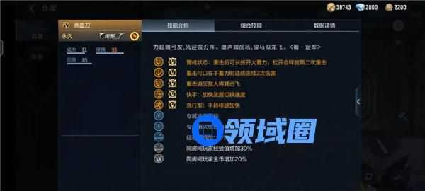 除了英雄级近战武器常规的快手急行军之外,赤血刀还具有警戒姿态:重击后可长按开火蓄力,松开会释放第二次重击。而在不蓄力的时候,赤血刀的重击可以造成二段攻击。除此之外,赤血刀与巴雷特-定军以及沙鹰-定军还可以激活定军套装效果,使主弹匣子弹数+2。总体而言,赤血刀颇有几分类似于斩神刀与虎头湛金枪的结合体。