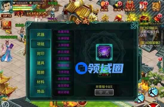 该系统可以进行项链的合成,玩家通过参与万妖塔可以获得项链,满足一定条件的项链数量即可合成高等级的项链,更好的增强战斗力。