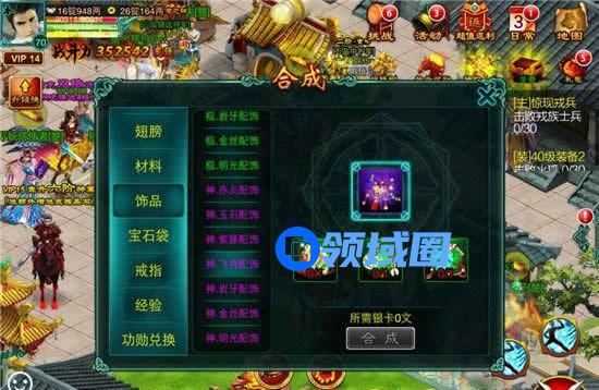 饰品在游戏中是比较稀缺的装备,需要特定的途径产出。玩家参与英雄本可获得配饰,并且可从副本界面明确的看到副本对应产出的配饰,集齐一定数量和种类的配饰之后即可通过此界面合成稀有的高品质配饰提升战斗力。