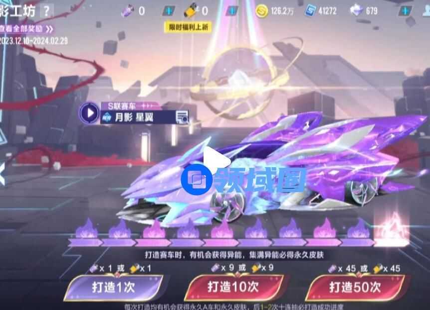 s月影需要玩家花费电池去打造,打造一次1个电池,50词是45个电池,每次打造都有机会获得永久A车和永久皮肤,所以出不出完全看脸。