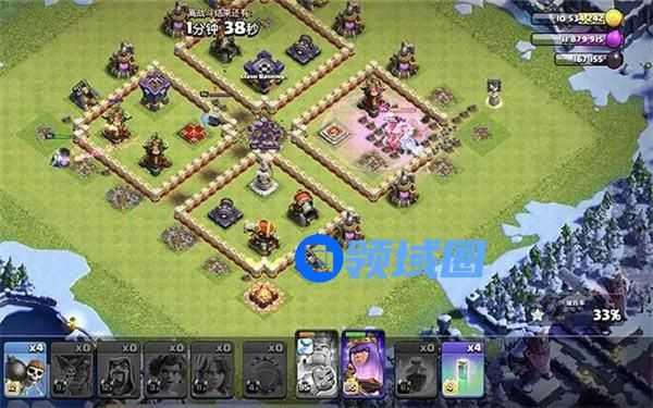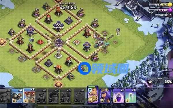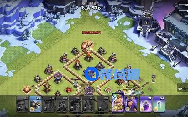 而女王的进攻就显得尤其重要了,在进攻的时候方位在九点钟方向,从九点钟区块的七点钟方位起手,同时需要打掉三个箭塔和一个女王,打完以后基本被换掉!