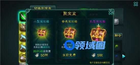 如果玩家想快速获取宝石的话可以进入该界面的聚宝盆界面,通过花费金币抽取即可快捷的获得大量宝石。