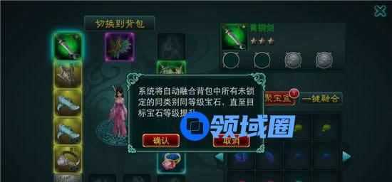 合成玩法更为快捷,首先点击一键融合,然后选取目标宝石,系统会自动融合背包内所有同类别同等级宝石,直至目标宝石等级提升。