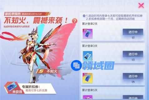 新机甲即将上线!1月11日至1月18日,每日登录领取好礼最高可获得不知火七折购买折扣券!