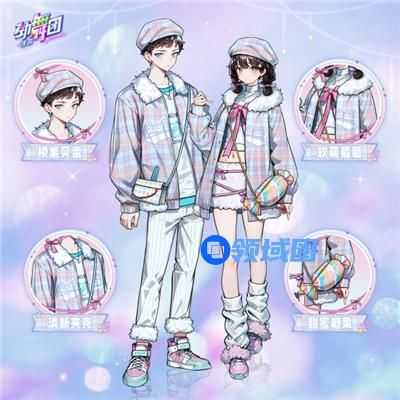 软萌清纯的情侣装“葡萄牛奶”,女孩手垮可爱糖果包,为白雪皑皑的冬日撒上一道清爽萌动的多巴胺色彩!