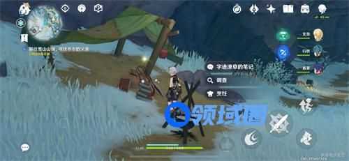 跟随指引,前往雪山西面的山坡营地处,用火元素角色攻击溶解冰块,然后交互调查“字迹端正的笔记”