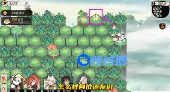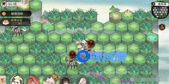 最强祖师清风涧秘境是玩家等级18级时会进入的副本,不过副本内的妖怪雷麟马,境界为:化神圆满,当前玩家的弟子等级是无法与之对战的,所以玩家需要借助草丛拉扯并躲避雷麟马的追击,拿到古宝通关秘境。不过需要注意的是,雷麟马的行动距离为2格,玩家稍有走位失误,就会被雷麟马追上击败。下面就是具体的走位方法: