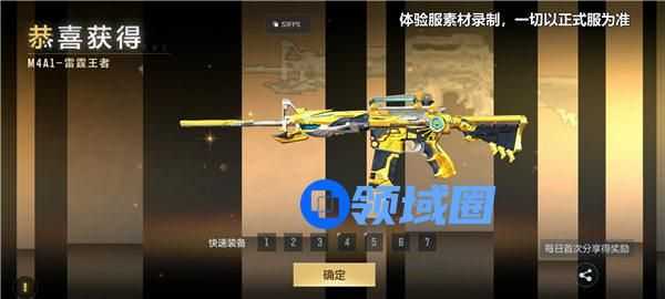 首先来看看雷霆王者套装的主武器:M4A1-雷霆王者。这款武器是为世界上珍稀武器收藏家特制的收藏用“M4A1-S”,油炸后的M4雷霆不再是以往的银黑色涂装风格,在成功重塑了机械野兽的灵魂后,进化成焕然一新的黄金铠甲,枪身点缀了一抹青色雷电,无处不透露着金色野兽的凶猛之气。