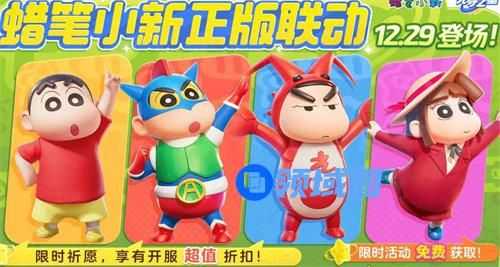 1、元梦之星x蜡笔小新正版联动12月29日上线。本次联动将上线三款小新皮肤,以及一款可以免费获取的小爱皮肤。
