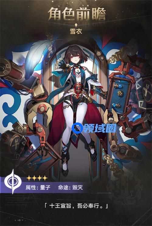 崩坏星穹铁道游戏战局瞬息万变,时刻都会出现无法预知的变化,只有凭借不同策略才能赢得每次战斗的胜利,在冒险的旅程中,玩家需要解决其他星球因星核引起的事件。随着战斗逐渐深入,将面对拥有特殊机制的敌人,战斗变得更加刺激和有趣。崩坏星穹铁道雪衣是1.6版本将要上线的新四星量子属性毁灭命途角色,整体强度也是非常的不错,天赋对敌人韧性造成伤害时可以叠加“复仇”达到6层之后还可以造成额外的伤害,很多玩家还不是很清楚雪衣具体技能是什么,下面就由小编给大家分享崩坏星穹铁道雪衣技能详情介绍,感兴趣的小伙伴们快来一起看看吧。