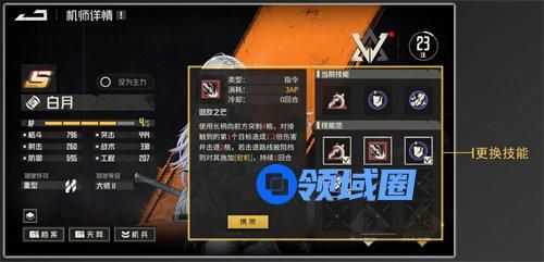 解锁后可获得对应技能,机师可以自由选择已激活的技能,但每名机师只能携带三个技能(包括被动技能),技能可以在机师详情页面中进行替换。