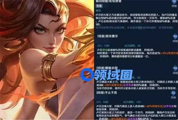 以上就是为大家带来的王者荣耀卢雅那技能介绍,希望对大家有所帮助。更多精彩内容,敬请继续关注领域圈。