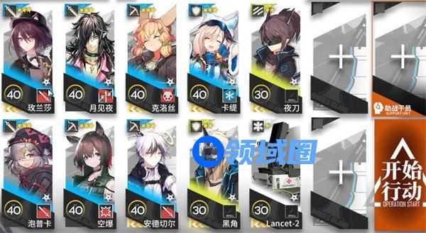 这套阵容中,需要两个近战来打输出,这里用到了玫兰莎和泡普卡,当然如果你有更高星的近卫,比如斯卡迪、陈这些自然是更好。此外,还需要一个远攻近卫,这里用到的是月见夜,你也可以换成拉普兰德或者银灰。