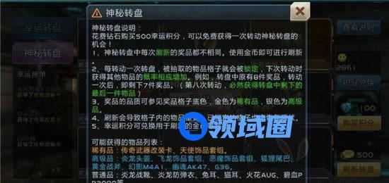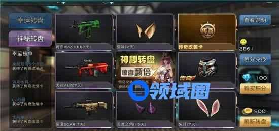 注: 抽幸运转盘和神秘转盘的同时都会获赠积分,积分可兑换精美游戏道具: