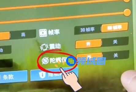 1、打开游戏的设置选项,在左下角找到陀螺仪选项,点击开启