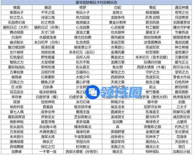 以上就是为大家带来的王者荣耀豪华皮肤畅玩卡可用皮肤一览,希望对大家有所帮助。更多精彩内容,敬请继续关注领域圈。