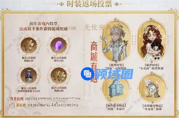 1、联动时装返场投票活动:3月15日至2月24日期间可以进行投票。
