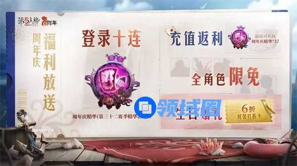 以上就是为大家带来的第五人格六周年福利活动介绍,希望对大家有所帮助。更多精彩内容,敬请继续关注领域圈。