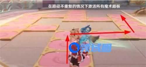 6、最后沿着箭头到达终点后,就能完成在路径不重复的情况下激活所有魔术踏板挑战。