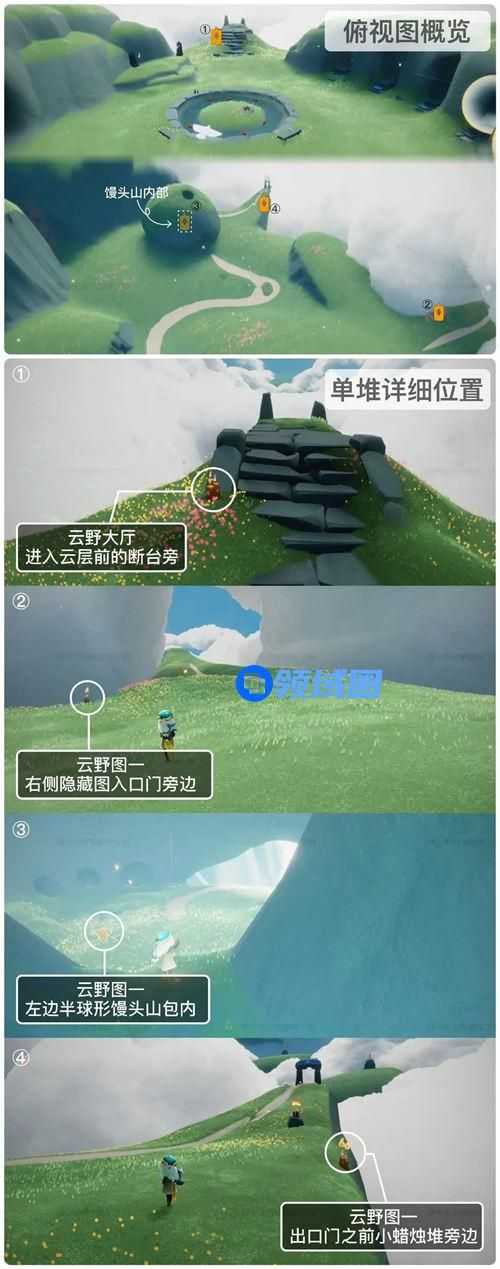 光遇3月15日季节蜡烛位置分别在云野大厅传送点左侧的楼梯下面、浮岛图门口的左侧、蝴蝶平原的小山包里面和云野通往三塔图的小路右边边缘,点燃即可收集。具体位置如下图所示:
